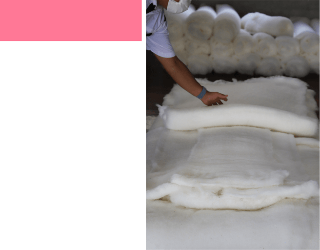 そして1級寝具技能士の手作業により全国的にも珍しいロールの状態にて綿入れ作業を行います。