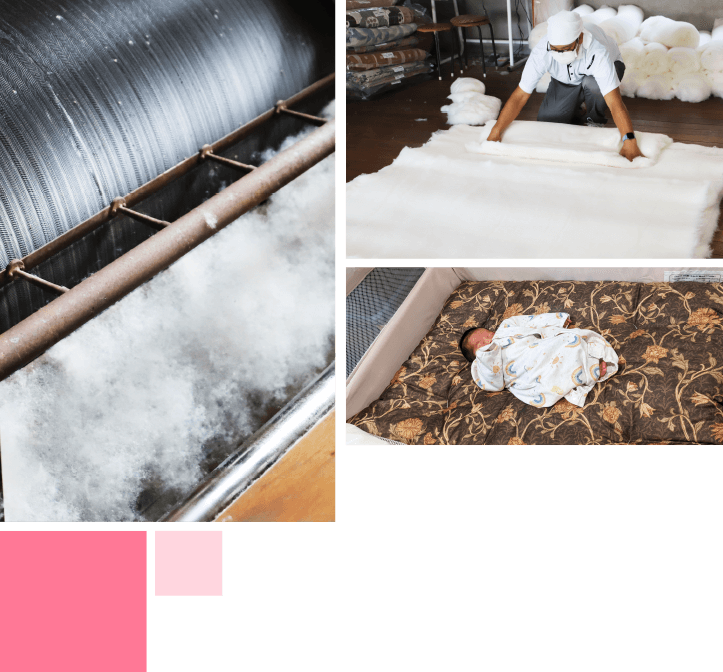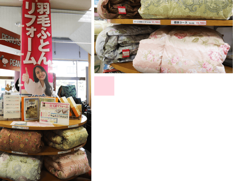綿のお布団はもちろんのこと羽毛布団や各種カバー、セミオーダー枕、敷パッド、保育園のお昼寝布団やマットレスに法要座布団などなど寝具に関わることなら何でもご相談ください!