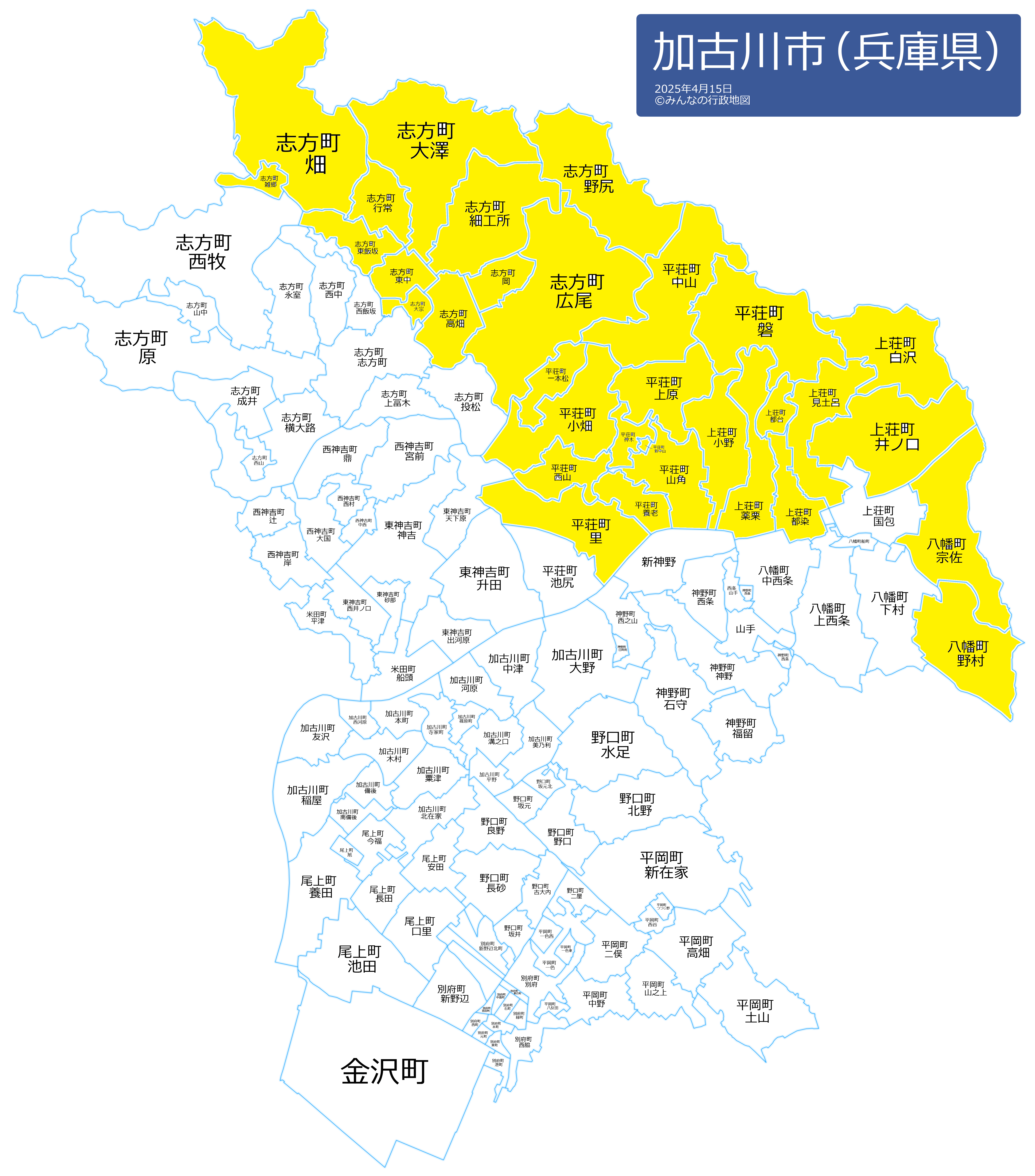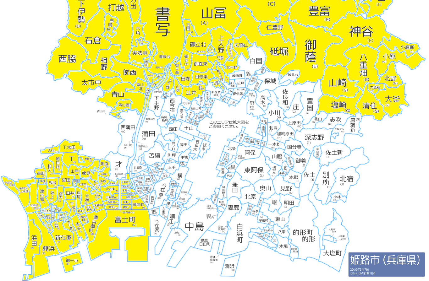 ・姫路市、加古川市の一部(地図上の黄色部)は2組以上からのご利用をお願いします。